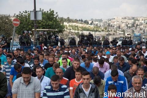 The occupation forces arrested on Friday 10 Jerusalemites amid a complete siege on the city and Al-Aqsa Mosque. Friday Prayer in the streets…Prayer on asphalt Hundreds of Palestinians performed the Friday Prayer in the streets of the city and the Old City of Jerusalem after men under the age of 50 were prevented from entering Al-Aqsa. Friday Noon Prayer was held in the areas of Damascus Gate, Wadi Al-Joz, Lions Gate, Ras Al-Amoud, Herod’s Gate and Dung Gate. Dozens of Special Forces, Cavalry Units, police, borders police and intelligence personnel were present in the streets and a surveillance balloon was launched in the sky of Jerusalem to monitor the movement of Palestinians. A siege on Al-Aqsa Mosque The occupation police closed Al-Aqsa Gates except for Lions, Hutta, Al-Silsileh, Al-Majles and Al-Mathara gates and established iron barriers on the open gates. They checked IDs of worshippers and obstructed the entrance of females and searched their bags. The forces also deliberately checked the IDs of most men even though all those who were able to reach Al-Aqsa gates were above 50 years of age and were searched at the gates of the Old City of Jerusalem. Arrests The occupation forces arrested two young men from the area of Damascus Gate and neighborhood of Wadi Al-Joz. Amjad Abu Asab, head of Jerusalemites detainees and prisoners families committee, explained that the occupation forces arrested a group of Jerusalemites on Thursday night and Friday morning including Abed Walid Salaymeh, Louai Za’tari and Mohammad Jarjoor (15) from the Old City of Jerusalem, Issa Ja’bari from Damascus Gate, Ali Sabra from Sur Baher and Tamer Abu Asab from Beit Hanina. The forces also arrested Abdullah Shallodi, brother of Martyr Abdulrahman Shallodi, and assaulted him under the pretext of “intent to carry out an attack”. A stabbing incident in Jerusalem The occupation forces arrested a Jerusalemite young man in the area of Sheikh Jarrah (Street Number 1) under the pretext of stabbing a settler Clashes Clashes broke out in the villages of Esawyeh and Jabal Al-Mukabber and in Shu’fat refugee camp in which the occupation forces heavily fired tear-gas grenades while attempting to raid the funeral tent of Martyr Wisam Mansi in the camp.