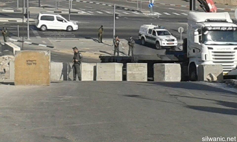 The occupation authorities closed the entrances of Wadi Al-Rababeh and Al-Thori in Silwan with cement blocks while blocks were placed in other streets and neighborhood such as Wadi Hilweh and Ras Al-Amoud and were used as searching stations (blocks with the presence of soldiers).