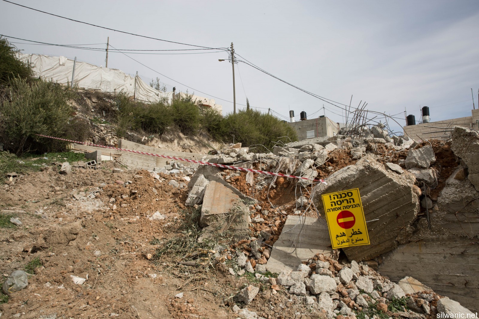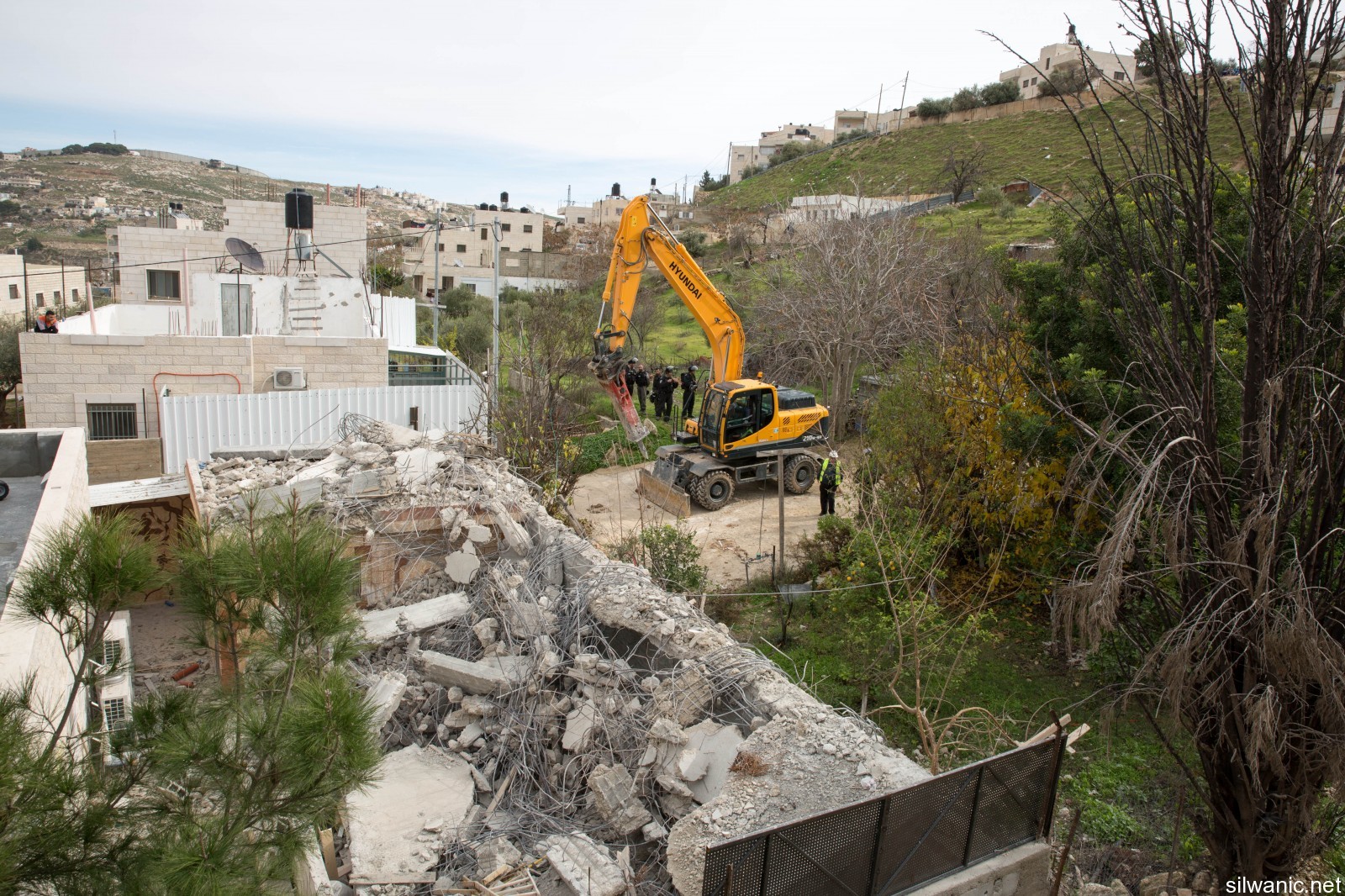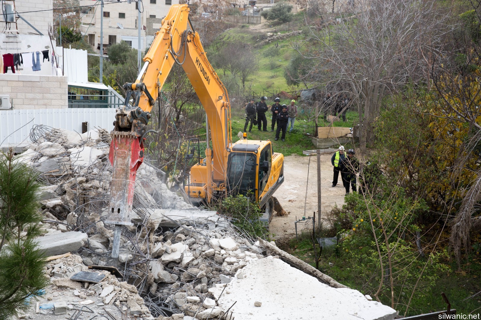 The occupation’s bulldozers also demolished an under-construction residential building owned by Diab family in the neighborhood of Karm Al-Sheikh in Silwan.