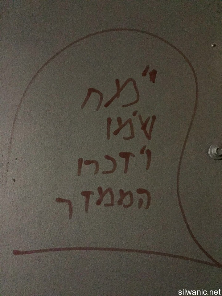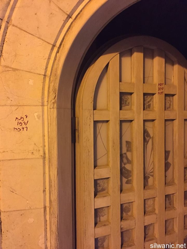 خط مستوطنون بعد منتصف الليل شعارات عنصرية تحريضية على أبواب كنيسة "الدورمتسيون_رقاد السيدة العذراء" الكائنة في جبل صهيون بالقدس القديمة.
