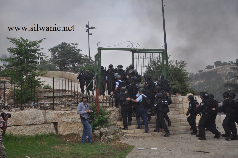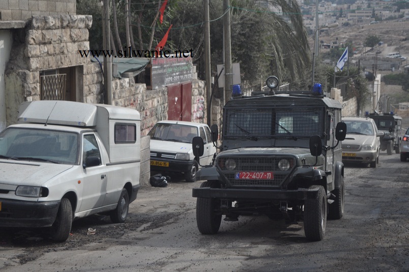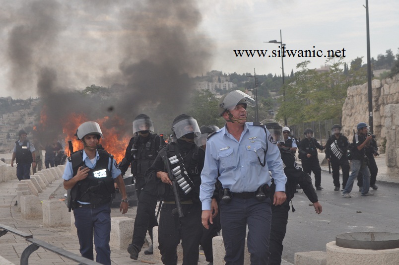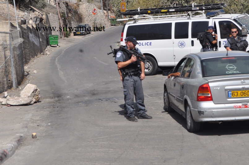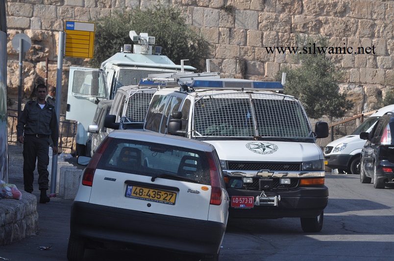 سيارات القوات الخاصة وسيارة خراطيم المياه على مدخل سلوان الشمالي في وادي حلوة