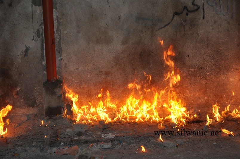 زجاجة حارقة تشتعل بالقرب من بيت العسلي في حي بطن الهوى