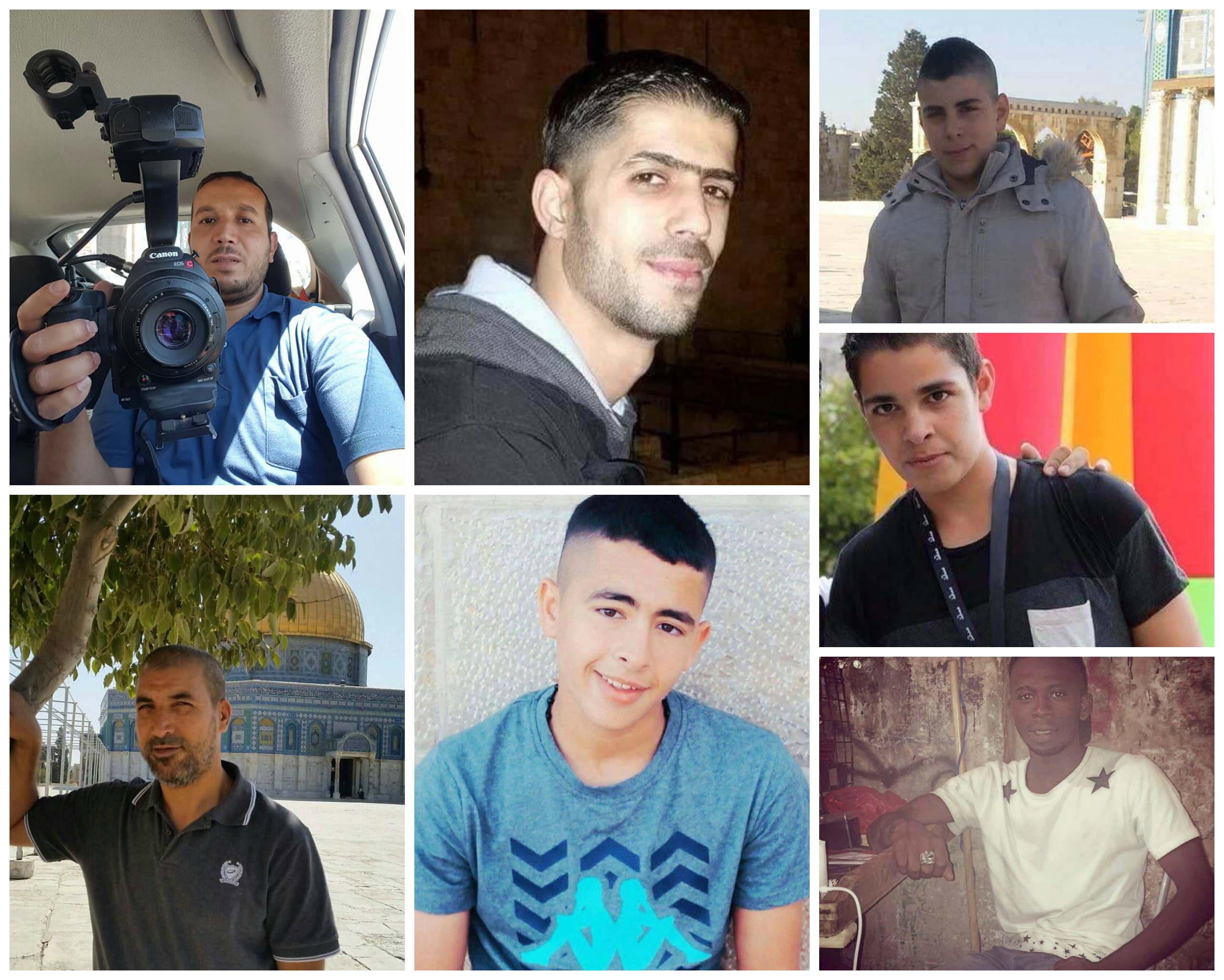 وأوضح المحامي محمد محمود أن القوات الإسرائيلية اعتقلت : أحمد محمد أبو غزالة 50 عاماً، محمد يوسف عبد الغني 41 عاماً، الصحفي أمجد طاهر عرفة 36 عاماً، وأمجد محمود عبد الغني 17 عاماً، ونور سليم الشبي 18 عاما ، وليث سليم الشلبي 15 عاما، ومحمد عبد السميع جابر 17 عاماً.