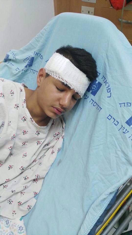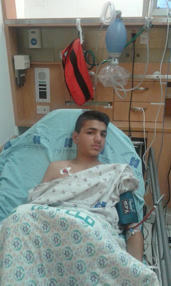 يرقد الفتى فهمي إياد جويلس 13 عاماً، في مستشفى هداسا عين كارم، للعلاج، بعد إصابته بشظايا رصاص الاحتلال في شارع الواد بالقدس القديمة.