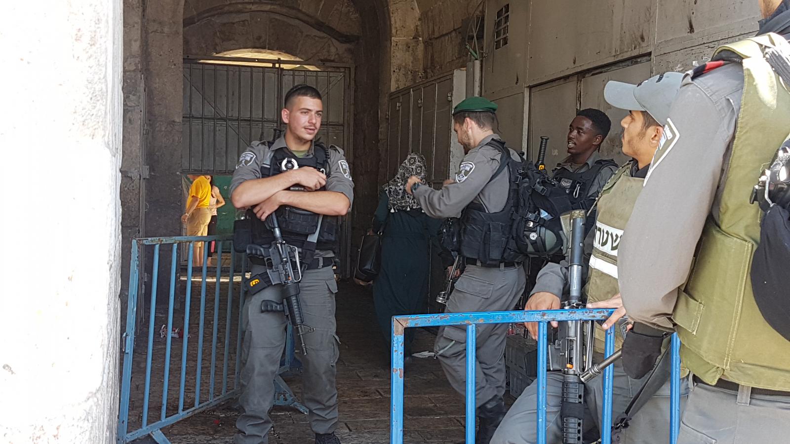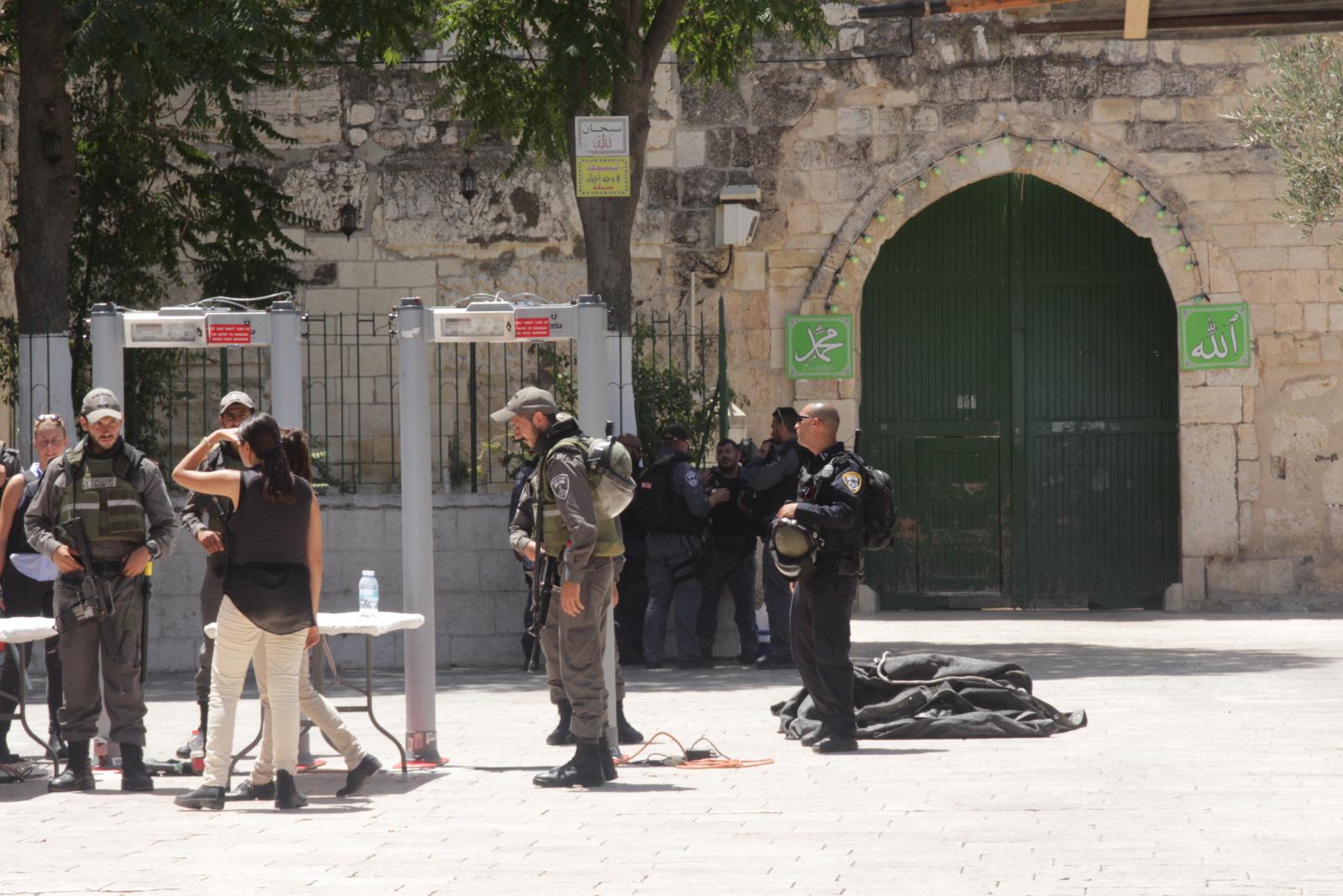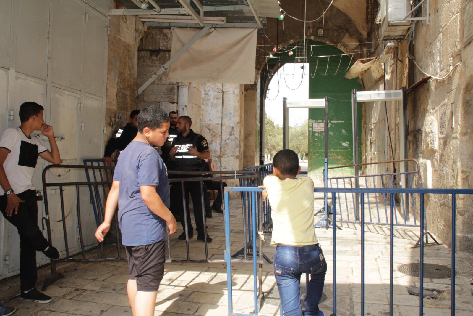 On the 16th of July, the occupation government decided to open Al-Aqsa Mosque on condition of placing metal detectors at the entrances to conduct an inspection of those entering Al-Aqsa. A private company under the supervision of officers and occupation forces placed five electronic gates near Lions Gate, two at Al-Silsileh Gate and two at Al-Majles Gate. Only three gates (Lions, Al-Majles and Al-Silsileh) were opened for worshipers while Hutta, King Faisal, Ghawanmeh, Hadeed, Al-Mathara and Al-Qataneen gates remained closed.