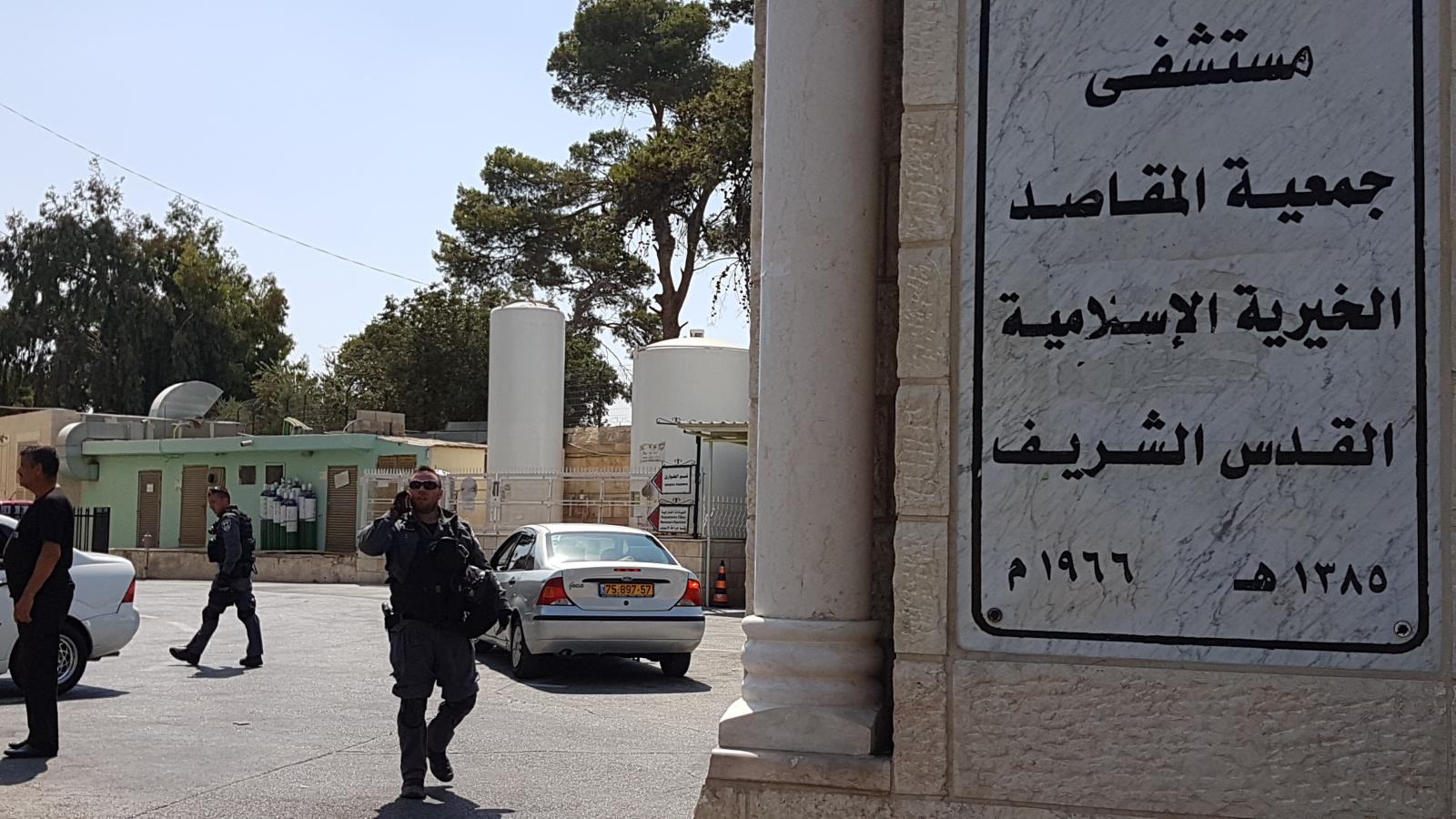 Al-Maqased hospital in the village of Al-Tur was also targeted by the occupation forces which raided the hospital from July 17th until the afternoon of the 18th in an attempt to arrest an injured young man. They raided several departments and were stationed in the courtyard of the hospital and at the gate of the “Intensive Care Unit” where an injured young man was being treated.