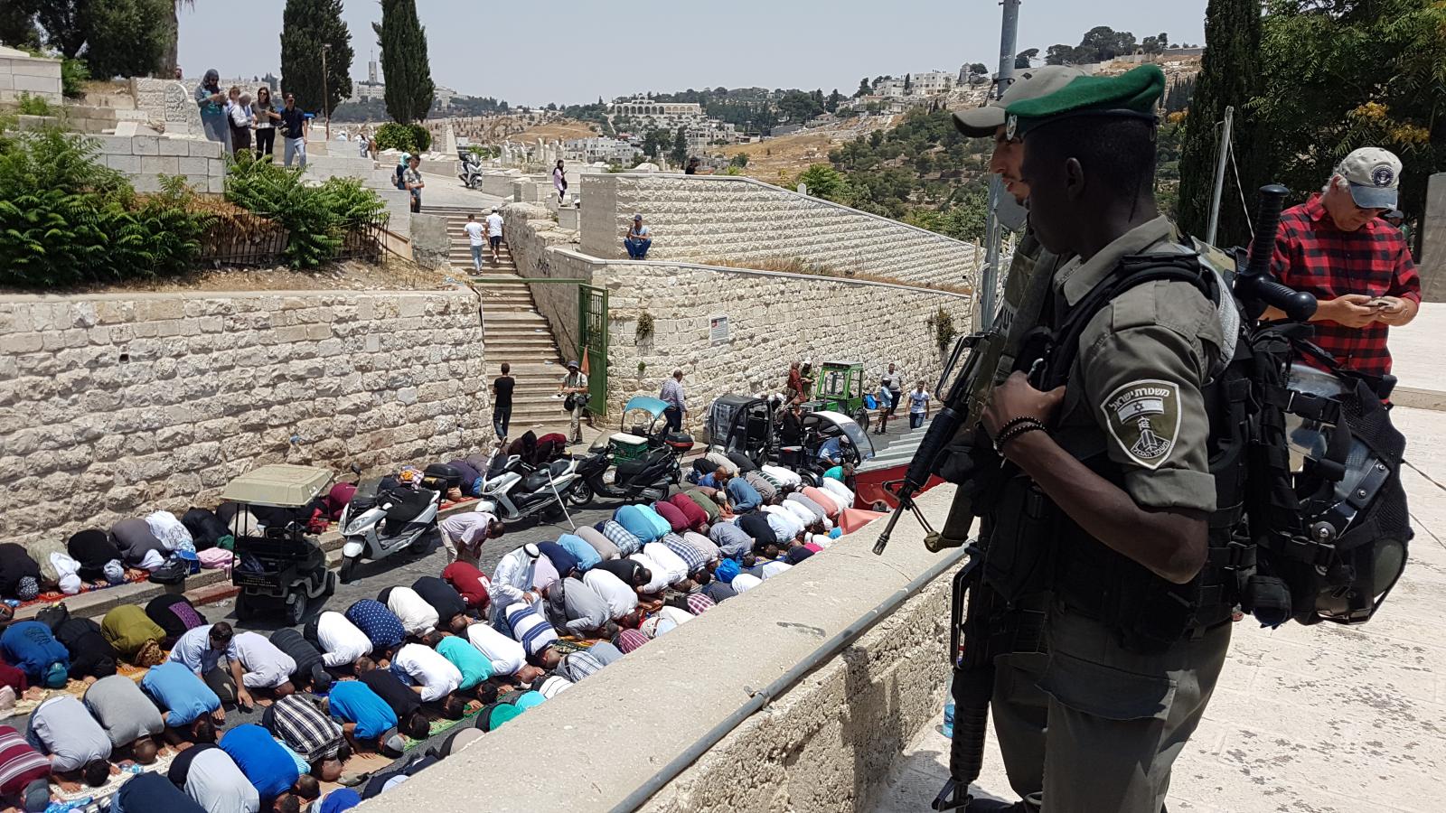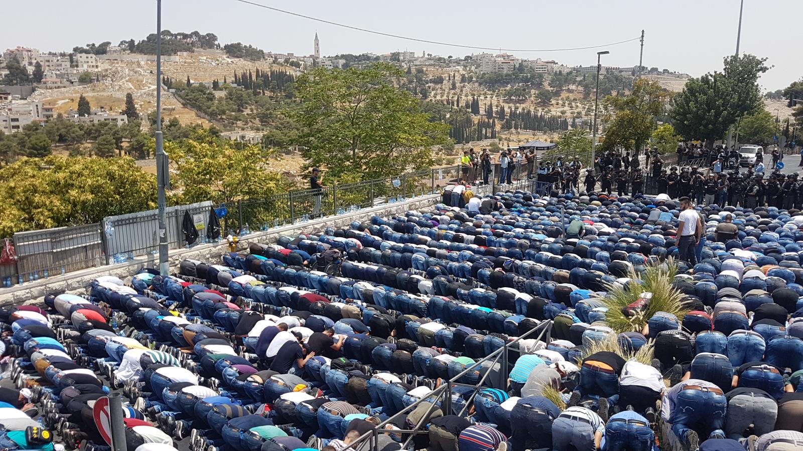 During the month of July, worshippers performed three Friday Noon Prayers (14th, 21st and 28th) in the streets of Jerusalem due to the closure and siege imposed on Al-Aqsa.
