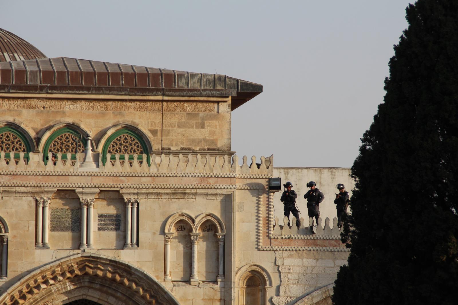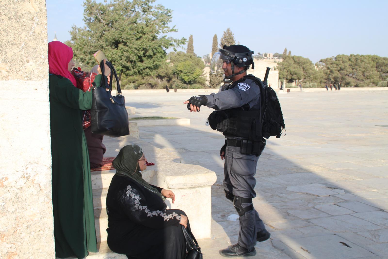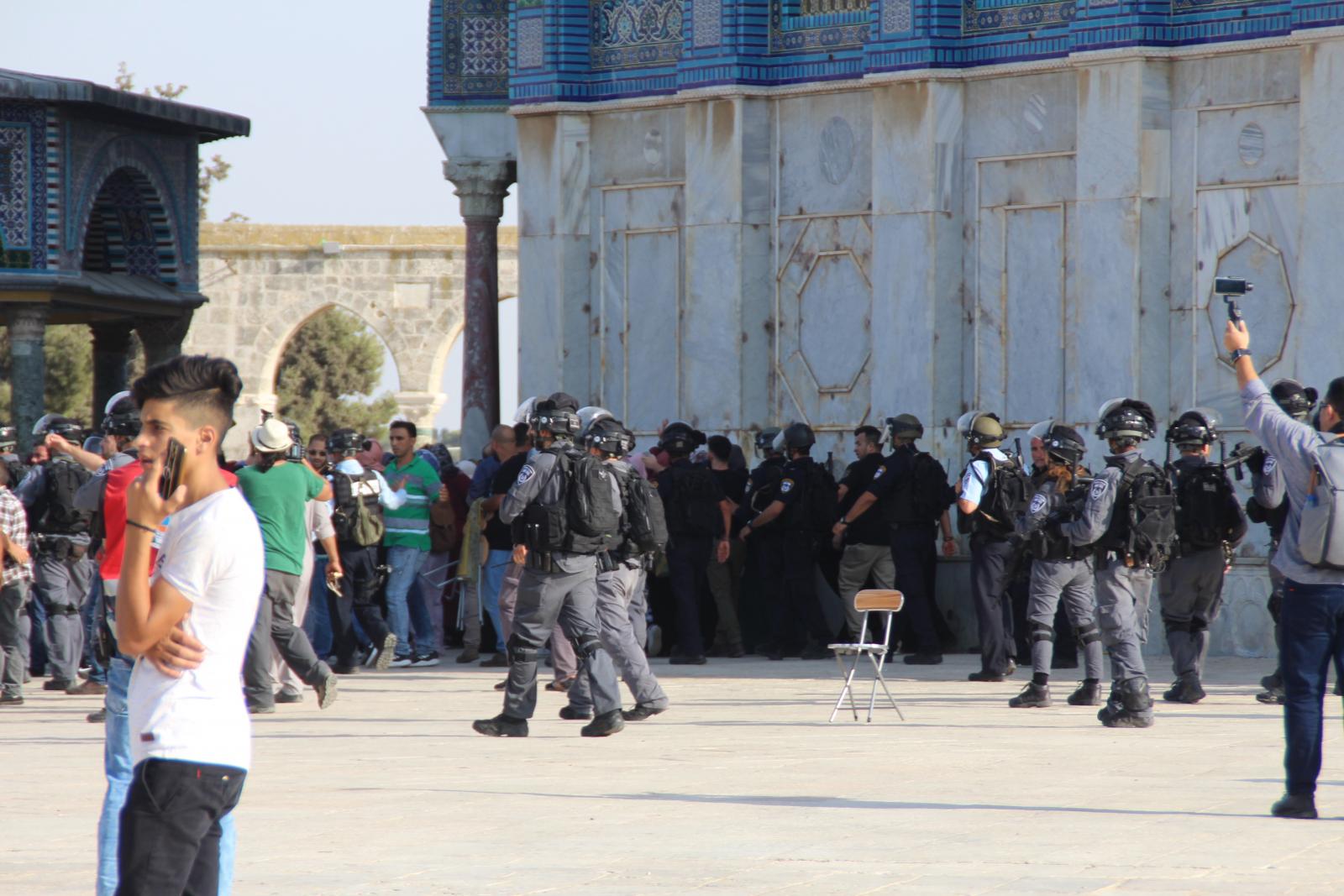 The center said that the occupation forces, after the incident, arrested all employees of the Islamic Awqaf Department that were at Al-Aqsa (58 employees), and conducted field investigations and registration of identity numbers for all worshipers who were present at the moment of the incident. Then, they vacated the entire Al-Aqsa Mosque and only a group of guards who were restricted from moving remained inside Al-Aqsa. The Israeli authorities then denied entry to Al-Aqsa for two days, during which they searched the "offices, mosques, squares, wells and facilities in the Al-Aqsa Mosque and messed with all of the contents”.