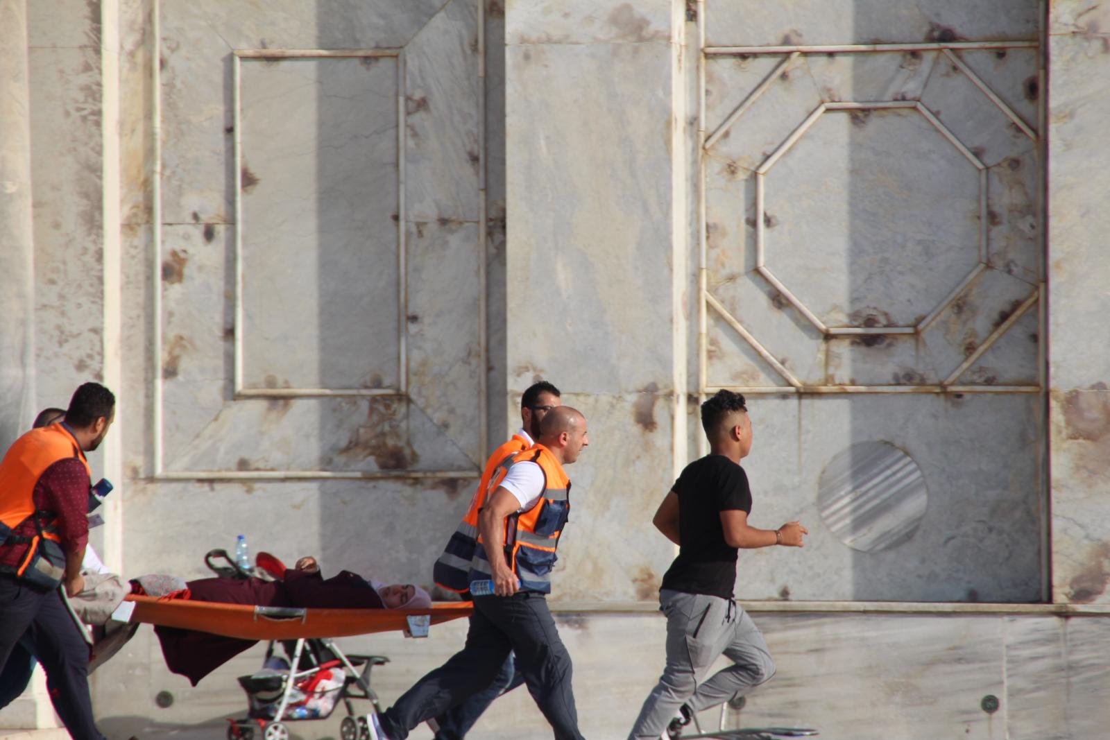 While suppressing prayers and sit-ins at Al-Aqsa gates, more than 600 Palestinians were injured by live ammunition, rubber bullets, sound grenades, tear gas or due to beating and pushing. Several people were injuries with bruises, burns and fractures while others were injured in the eye and lost their eyes. Among the injured were elderly people, women and children.