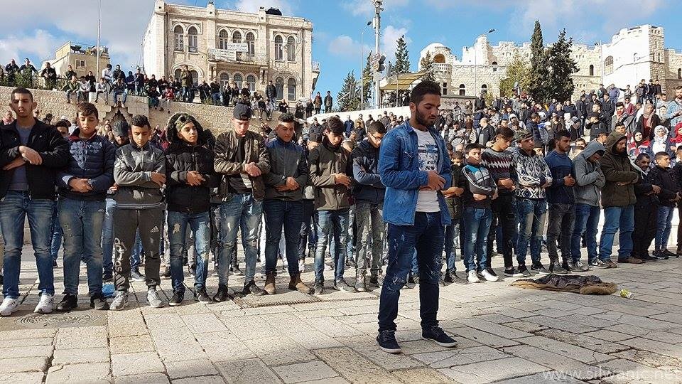 اعتقلت قوات الاحتلال الخميس عدة فتية وشبان مقدسيين، خلال قمع وقفة احتجاجية في منطقة باب العمود والشوارع المحيطة لها نظمت رفضا لقرار الرئيس الأمريكي بإعلانه القدس عاصمة لإسرائيل، فيما اعتدت على العديد من المشاركين بالضرب والدفع وحاولت عدة ساعات إخلاء منطقة باب العمود وإنهاء الاعتصام إلا أن المقدسيين واصلوا اعتصامهم لعدة ساعات، كما عم الاضراب التجاري والتعليمي في المدينة، احتجاجا على القرار.