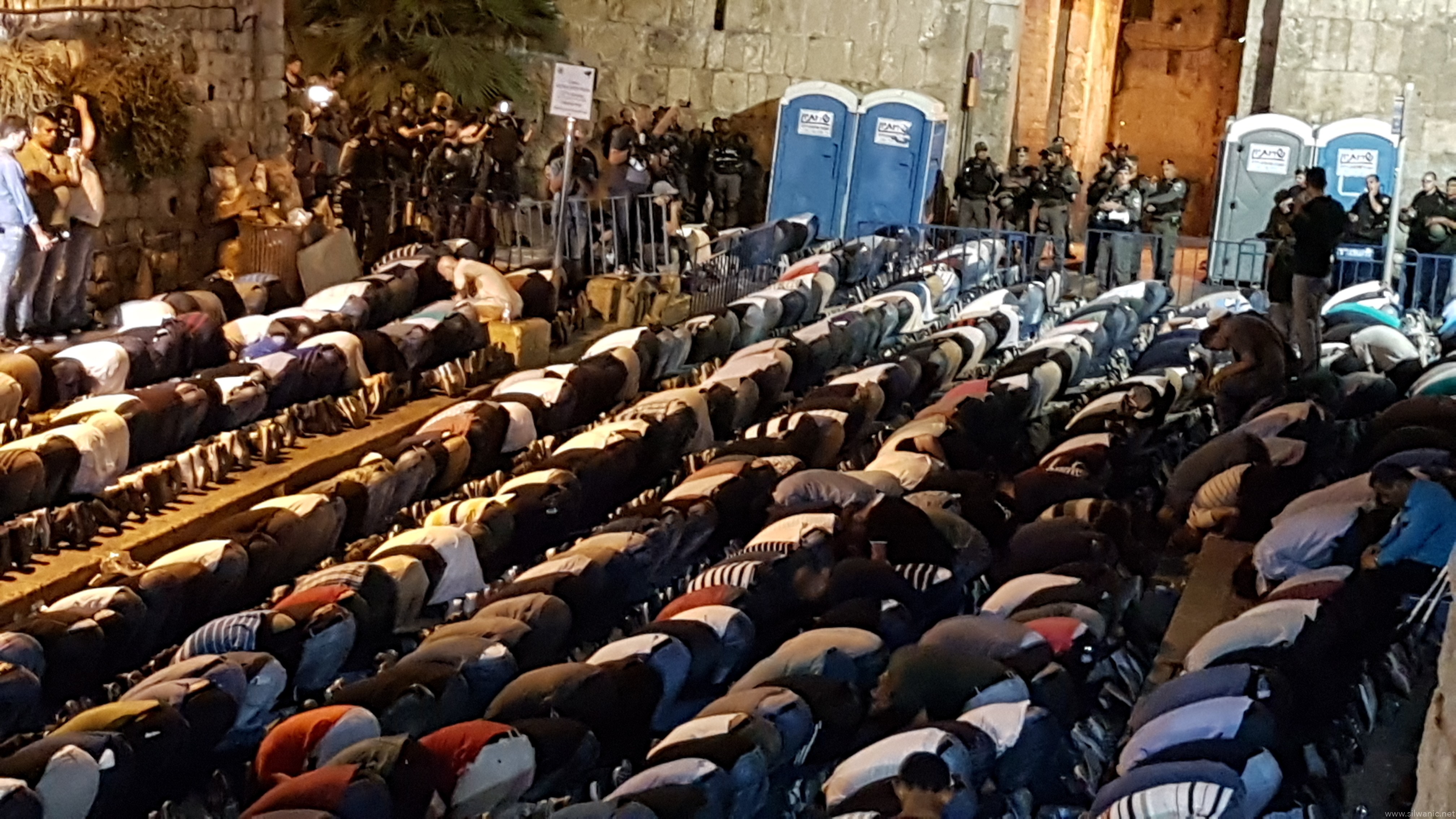 On the 16th of July, the occupation government decided to open Al-Aqsa Mosque on condition of placing metal detectors at the entrances to conduct an inspection of those entering Al-Aqsa. A private company under the supervision of officers and occupation forces placed five electronic gates near Lions Gate, two at Al-Silsileh Gate and two at Al-Majles Gate. Only three gates (Lions, Al-Majles and Al-Silsileh) were opened for worshipers while Hutta, King Faisal, Ghawanmeh, Hadeed, Al-Mathara and Al-Qataneen gates remained closed.
