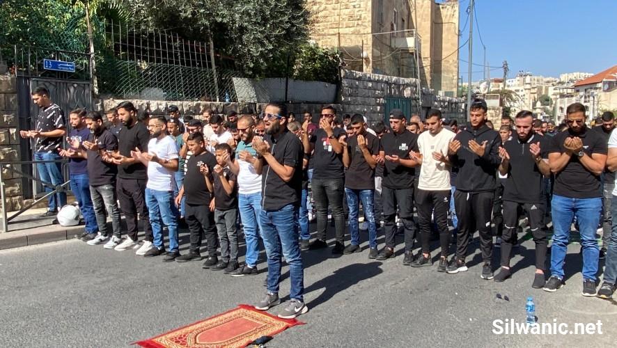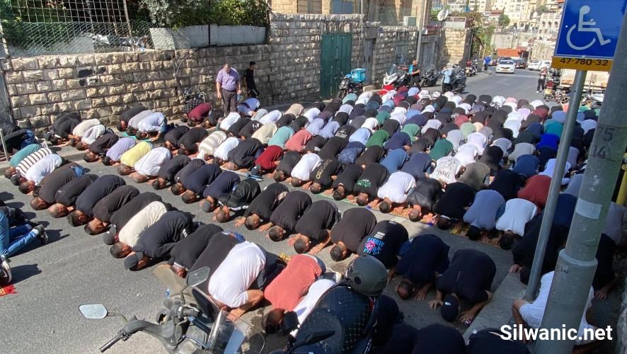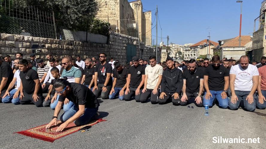 وأدى المئات من الفلسطينيين صلاة الجمعة على الأسفلت" في أقرب نقطة تمكنوا من الوصول اليها" حي واد الجوز، باب الاسباط، رأس العامود، شارع الزهراء، وأزقة البلدة القديمة وعند أبواب الأقصى"، وحاولت القوات منع الصلوات في الشوارع، بالضرب والدفع والتهديد.