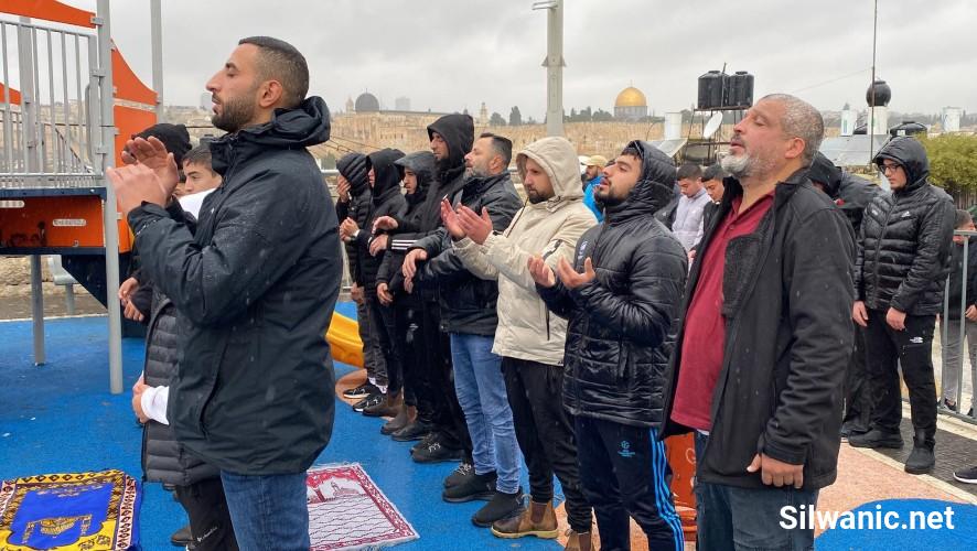 A woman from the Palestinian 1948 lands said: “The road is not easy, and entering Al-Aqsa requires willpower. Troops are everywhere in Jerusalem. We are trying from several gates. There is no consideration for our ages or health status, and even the rainy weather in Jerusalem did not prevent the forces from not allowing young men to enter Al-Aqsa.”