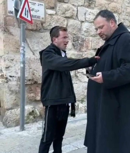 في منطقة "جبل صهيون" في القدس القديمة، قام مستوطنون بملاحقة رجل الدين الاب نيقوديموس شنابل، رئيس الرهبان البندكتان في الارض المقدسة، وبصقوا عليه، ثم وجهوا الشتائم للسيد المسيح عليه السلام، وحاولوا كذلك منعه من تصويرهم.