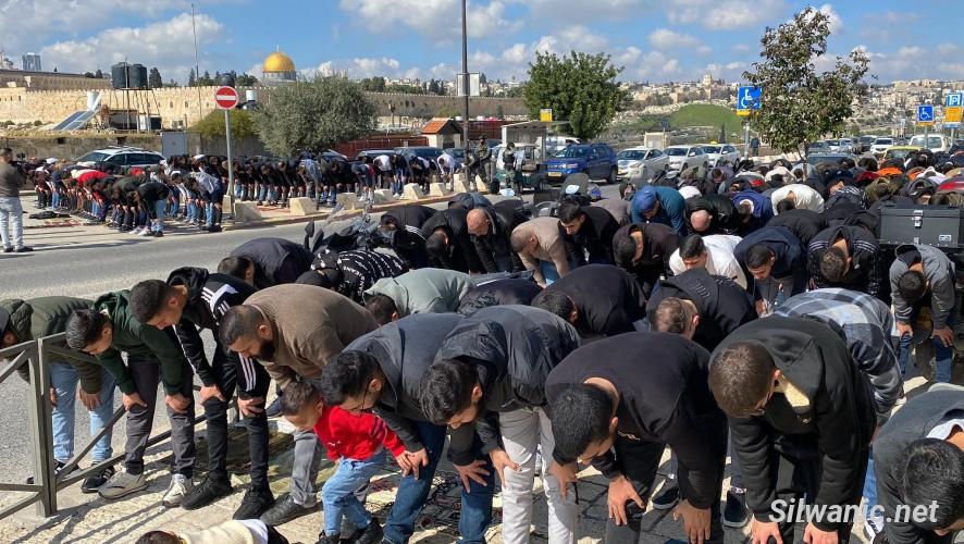 وبسبب المنع والقيود التي فرضت على دخول المصلين خاصة الشبان، أقيمت الصلاة في حي رأس العامود وعلى عتبات بعض أبواب الأقصى.