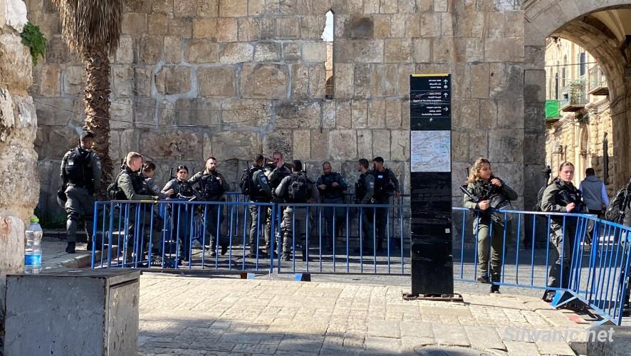 وأوضح مركز معلومات وادي حلوة- القدس، أن قوات الاحتلال نشرت عناصرها وحواجزها في شوارع مدينة القدس والأحياء القريبة من الأقصى والبلدة القديمة، وتمركزت على أبواب المسجد والبلدة، وقامت بتوقيف الوافدين الى الأقصى خاصة الشبان والفتية ومنعت المئات منهم من الدخول اليه.