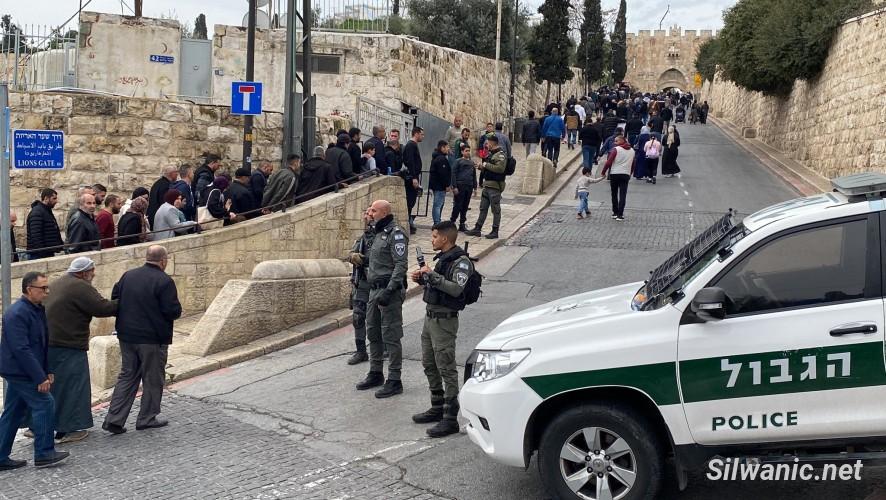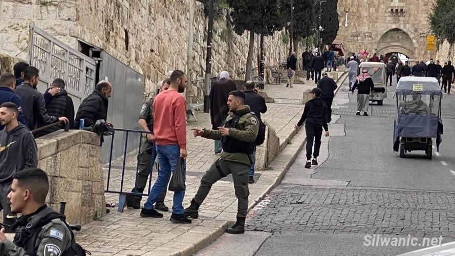 ورصد مركز معلومات وادي حلوة- القدس، الاعتداء على المصلين في منطقة "باب الاسباط، طريق مقبرة اليوسفية، ساحة الغزالي، طريق المجاهدين، باب السلسلة"، لإبعادهم عن محيط الأقصى والبلدة القديمة من جهة، ولمنعهم من الصلاة في أقرب نقطة تمكنوا من الوصول اليها من جهة ثانية.