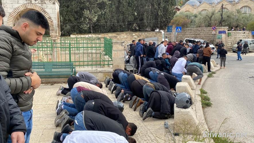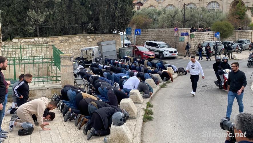 كما قمعت القوات الصلوات التي أقيمت في شوارع القدس، خاصة في منطقة باب الاسباط والسلسلة، وتعالت أصوات التكبيرات من الشبان خلال ملاحقتهم ومنعهم من الصلاة، حيث تمكن العشرات من الشبان أداء الصلاة في الشوارع.