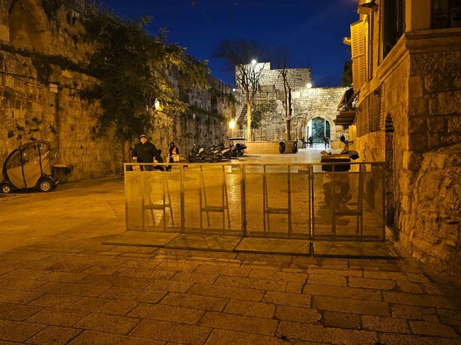 Late yesterday evening, the police placed the iron barriers in the Lions Gate square, and the Lions Gate area -outside the Jerusalem wall-.