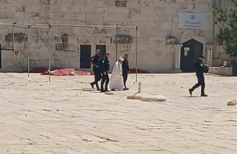 The Wadi Hilweh Information Center in Jerusalem explained that the occupation forces stormed the audio room in Al-Aqsa Mosque and arrested Sheikh Hussein while he was there. They then took him through the Dung Gate to the Al-Buraq Wall area and then to the al-Silsileh Gate interrogation center.
