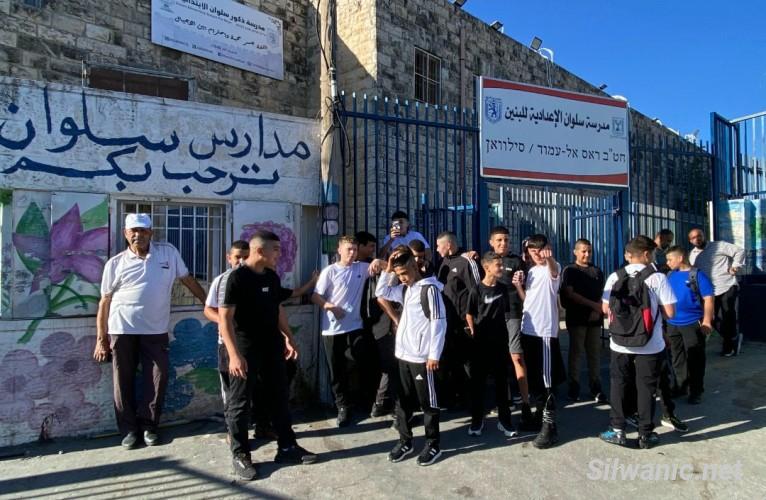 في المقابل، كثفت قوات الاحتلال انتشارها أمام مدرسة سلوان الإعدادية، اليوم وأمس، بالتزامن مع اعتصام وتواجد للطلبة وذويهم أمام المدرسة، مجددين رفضهم لنقل 600 طالب إلى مدرسة الشاملة التي "لا تستوعب هذا العدد ولا تتوفر فيها بيئة تعليمية ملائمة"، ومؤكدين أن "المدرسة الإعدادية بُنيت على نفقة الأهالي منذ عشرات السنين وتتمتع بطاقم إداري وتعليمي مميز."