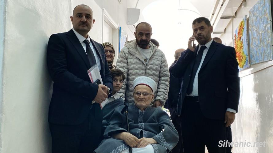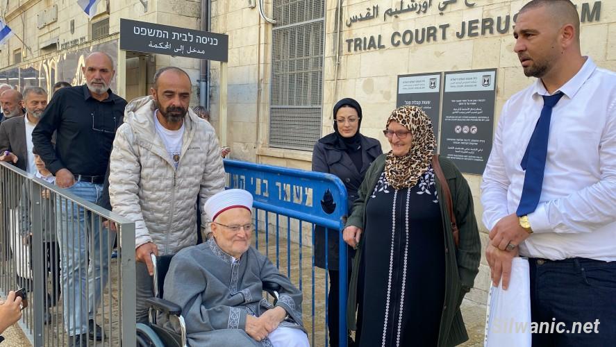 A hearing was held today, Tuesday, to review the trial file of Sheikh Ekrima Sabri, head of the Islamic Supreme Council, Imam, and preacher of the Al-Aqsa Mosque, following an indictment filed against him that includes "incitement to terrorism" during condolence speeches delivered at the funeral homes of the martyr Udi Tamimi in Jerusalem and the martyr Raed Khazem in Jenin in 2022, in addition to the mourning of the head of the Hamas movement, Sheikh Ismail Haniyeh, in the Al-Aqsa Mosque in 2024.